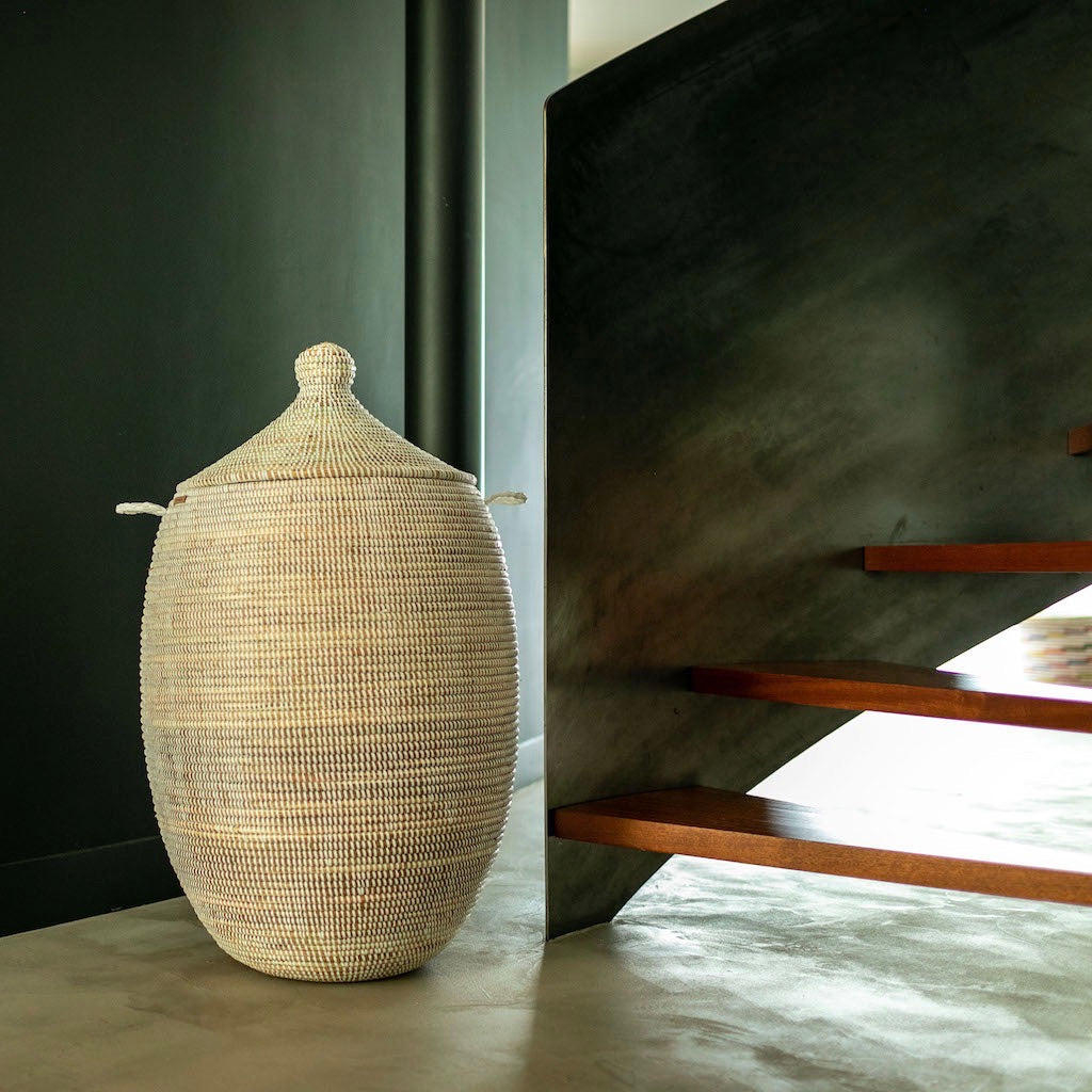 Apportez une décoration élégante et naturelle dans votre intérieur avec nos paniers Mame. Ils sont fait à la main au Sénégal et fabriqués à partir de typha et de plastique recyclé. Idéals pour ranger le linge, mettre les jouets des enfants ou même dans votre salle de bain....