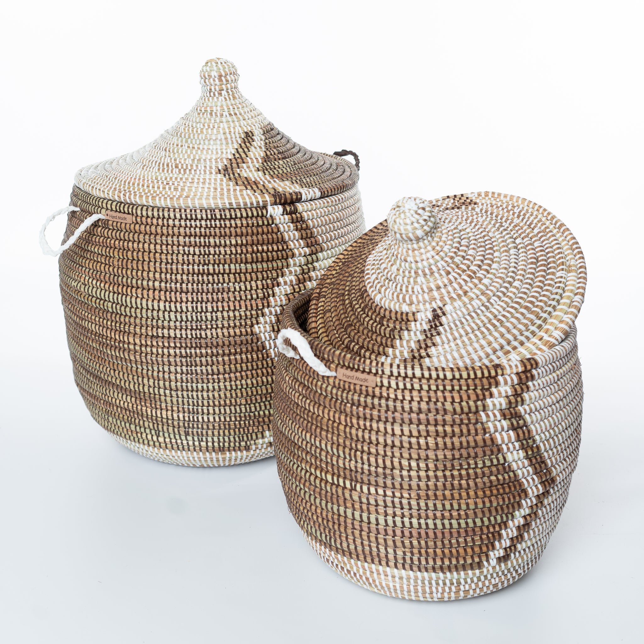 Apportez une décoration élégante et naturelle dans votre intérieur avec nos paniers Adama. Ils sont fait à la main au Sénégal et fabriqués à partir de typha et de plastique recyclé. Idéals pour ranger le linge, mettre les jouets des enfants ou même dans votre salle de bain....