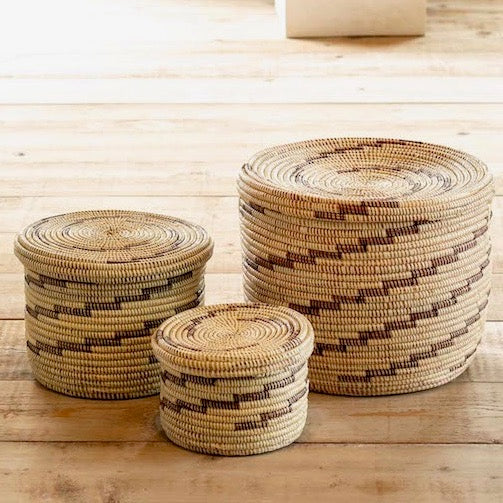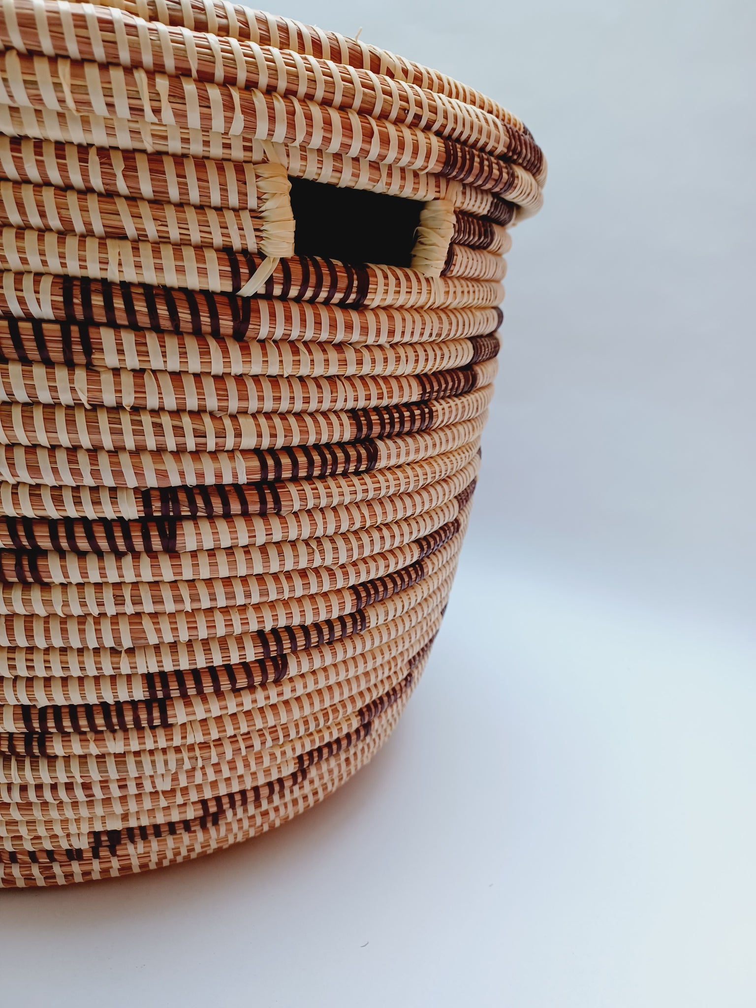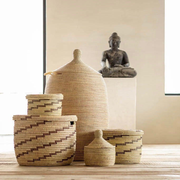 Cette nouvelle collection de paniers est moderne et joliment réalisée par les femmes de Ngaye au Sénégal. Ils peuvent servir de rangement de jouets, de journaux, de linge, de décoration de votre salon ou salle de bain...